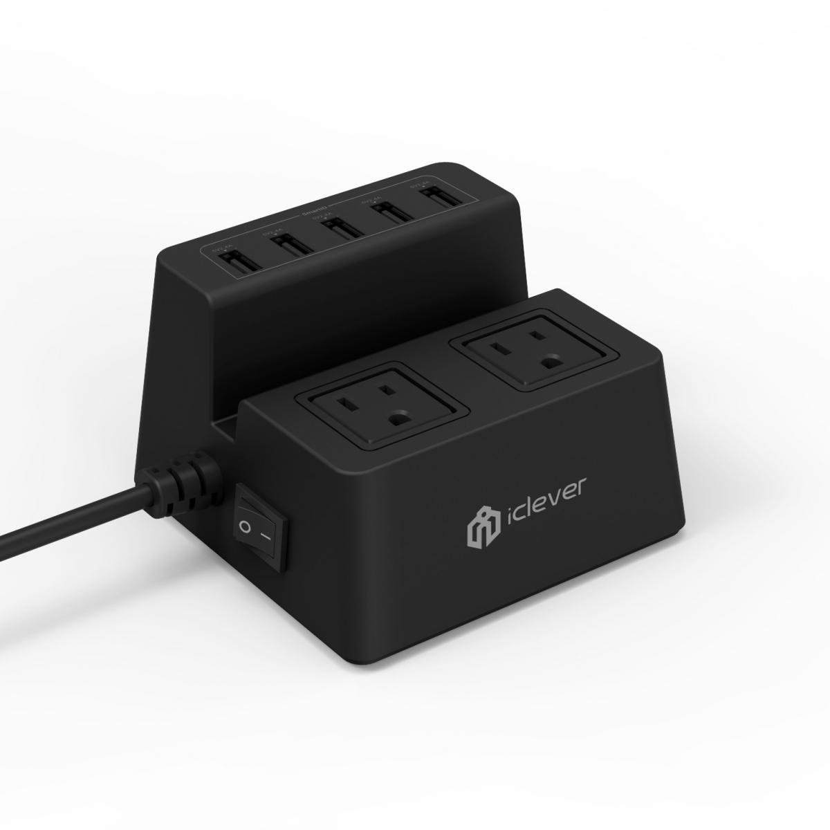(Product Review) iClever BoostCube Multiple Ports Desktop Charger, 5-Port USB (SmartID 40W 8A) Charging Station with 1700J 2 Surge Protected Outlets Power Strip for iPhone iPad Samsung Smartphone Tablet Laptop