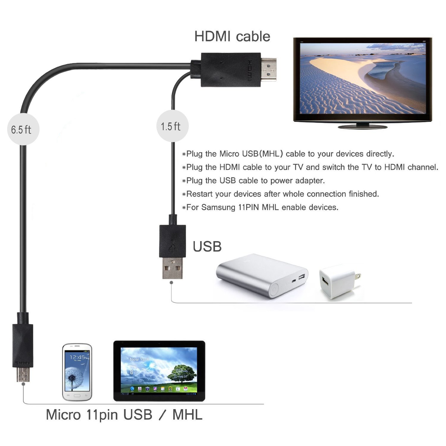 Just plug the micro USB into the phone, the HDMI into the TV, and the USB into either the TV if there is a spot for it or into a charger if your television doesn't have a USB port. The USB is for power and you will need this to put it all together. This is a really nice setup, and I will be using it a lot.