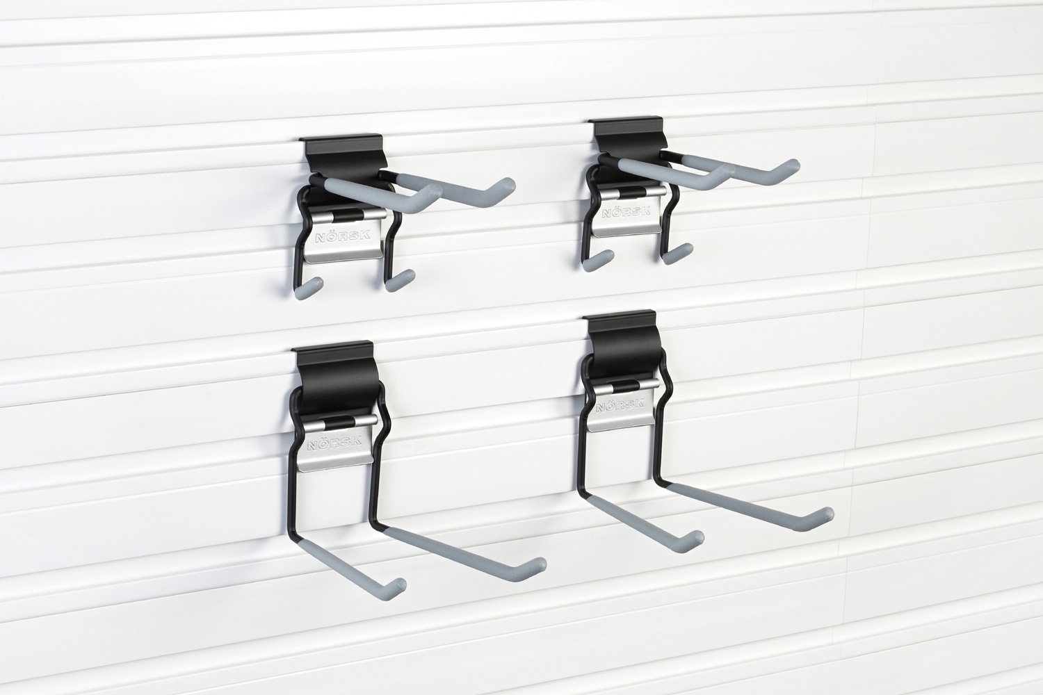 This value pack comes with everything you need to cover 10 square feet of wall space. Included in the box you will find 4 Norskwall sections, 2 fixed quad 6 inch hooks, 2 tall big mouth hooks and all the hardware you need to put it all together.